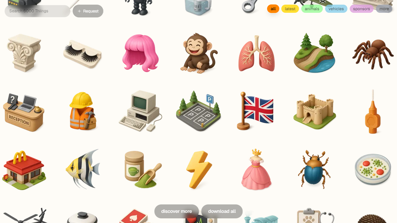 A growing collection of 6000+ free 3D icons, generated with AI. Perfect for designers and creative projects.